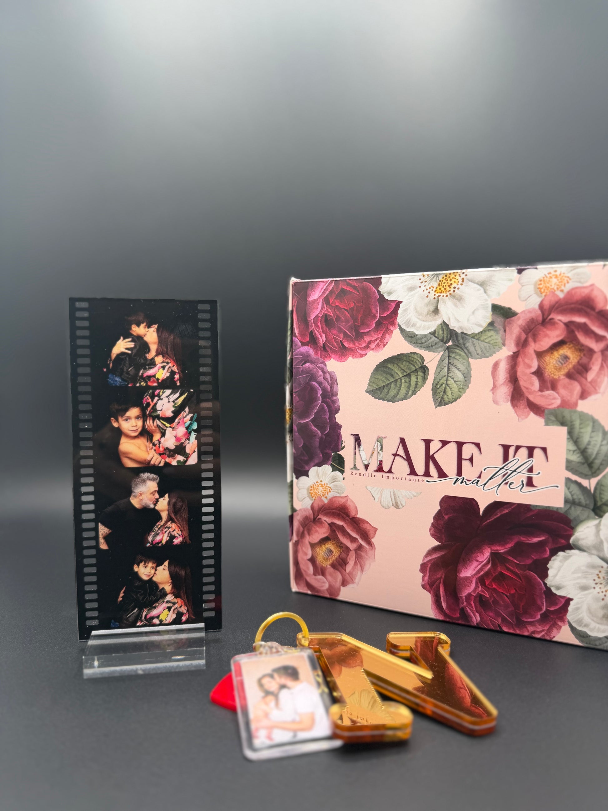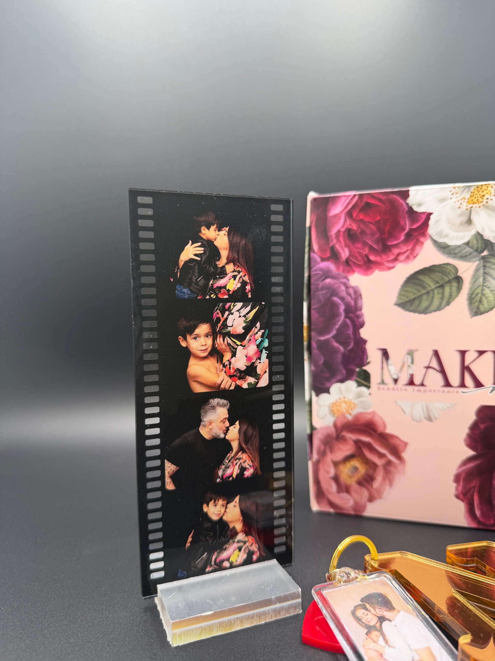 ❤️Pellicola cinematografica con foto + Portachiavi con ciondoli, Iniziale e foto